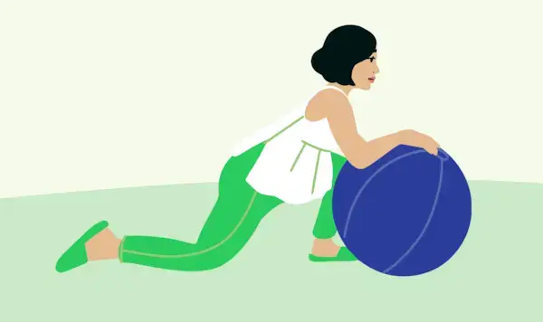 - Asetu korkeaan polvistumaan vasen kätesi tukipallolla tai tuolilla.